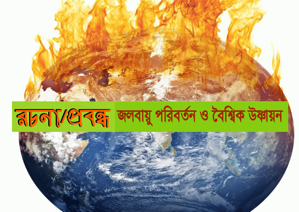 উপসংহারঃ মানবজাতি উন্নতির চরম শিখরে অবস্থান করলেও, বৈশ্বিক উষ্ণায়নের জন্য ধ্বংসের দ্বারপ্রান্তে ক্রমে এগিয়ে যাচ্ছে। এই অবস্থা মূলত মানুষেরই সৃষ্টি। বর্তমানে এটি ভয়াবহ আকার ধারণ করেছে। ভারসাম্য রক্ষা করে না চললে এই সমস্যাই যে বর্তমান সভ্যতার ধ্বংসের কারণ হবে, এতে কোনো সন্দেহ নেই। তাই আমাদেরকে এখনই জলবায়ু পরিবর্তন ও বৈশ্বিক উষ্ণায়ন রোধে এগিয়ে আসতে হবে।